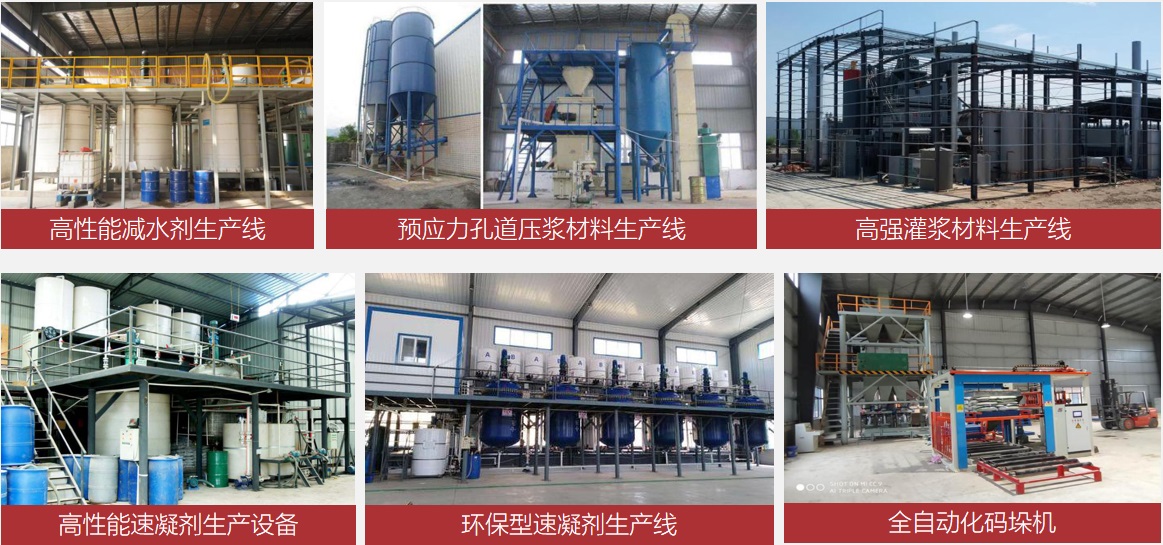 公司致力于混凝土外加劑系列產品、高分子材料研究、生產、銷售、開發應用及相關咨詢工作,公司主要產品包括橋梁預應力孔道壓漿材料、橋梁支座灌漿材料、加固灌漿材料、速凝劑、減水劑、膨脹劑等混凝土外加劑,廣泛供應于公路、鐵路、建筑、水利、工民建筑等大中型工程,所有產品均通過國家建筑工程質量監督檢測標準,深受建設施工單位及百余家用戶的一致認可和好評。